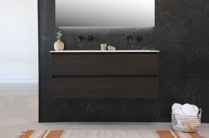 The Faktor range is our approach to grandeur and space. The new, slender INK Faktor range offers modern and spacious polystone washbasins with widths ranging up to an impressive 160 cm. If you are in favour of ample storage space and ease of use, this is your ideal bathroom furniture. You can opt for a large side plateau or an extra-large basin. An infinity of choices awaits you. This washbasin, with its ultra-modern bowl, already brings a familiar feeling to the INK collection. You can choose from gloss white or mat white finish. This washbasin can also be ideally combined with all washbasin cabinet from the INK range. Furthermore, the Faktor washbasin is also a perfect match for the new push-to-open washbasin cabinet.