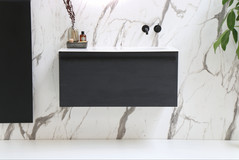 Extravagant may be the first word that comes to mind when you see this slim and slender washbasin. This awesome washbasin, in skilfully crafted porcelain, is definitely among the INK range's latest flagships. UFO cabinets come in their own original dimensions, with a unique depth of 48 cm for all washbasins. We were so impressed with this unit that we have developed a complete matching collection; marvelous single-drawer washbasin cabinets in the latest colours as well as spatial, transparent black steel frames to create an ultra-modern bathroom.